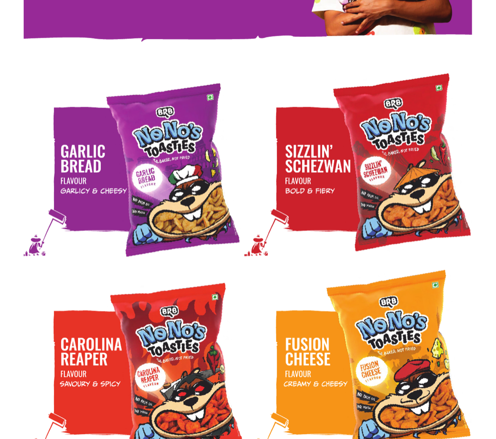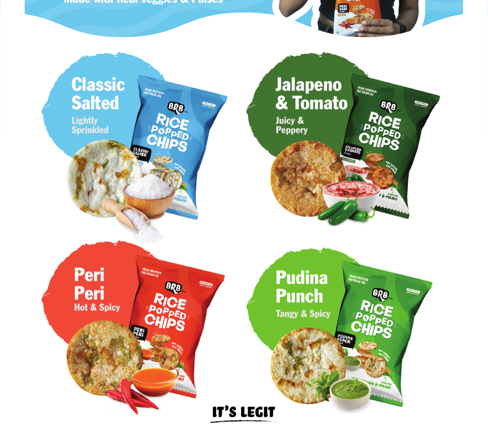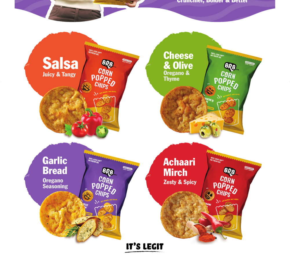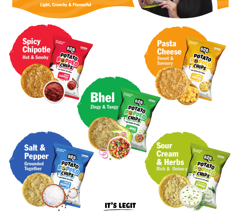 BRB, by Forbidden Foods Pvt Ltd, is India's new-age snacking brand on a mission to democratise healthy snacking. Their innovative product range - Popped Chips, Protein Wafer Bites, and NoNo's Toasties - features snacks that are not baked and not fried, made without palm oil, preservatives, or MSG. BRB is present in 3,000+ stores across India and exports to UAE, Oman, Bahrain, Kuwait, Saudi Arabia, Qatar, Taiwan and Mauritius. They supply to leading QSR chains (Costa Coffee, NBC, Faasos), corporate cafeterias (Uber, Netflix, Samsung, Microsoft, Google, LinkedIn), airlines (Akasa Air, Air India Express), and vending networks (Daalchini, Vendman, Nutritap, Stackd). Products are certified by FSSAI, ISO, Halal, and APEDA.