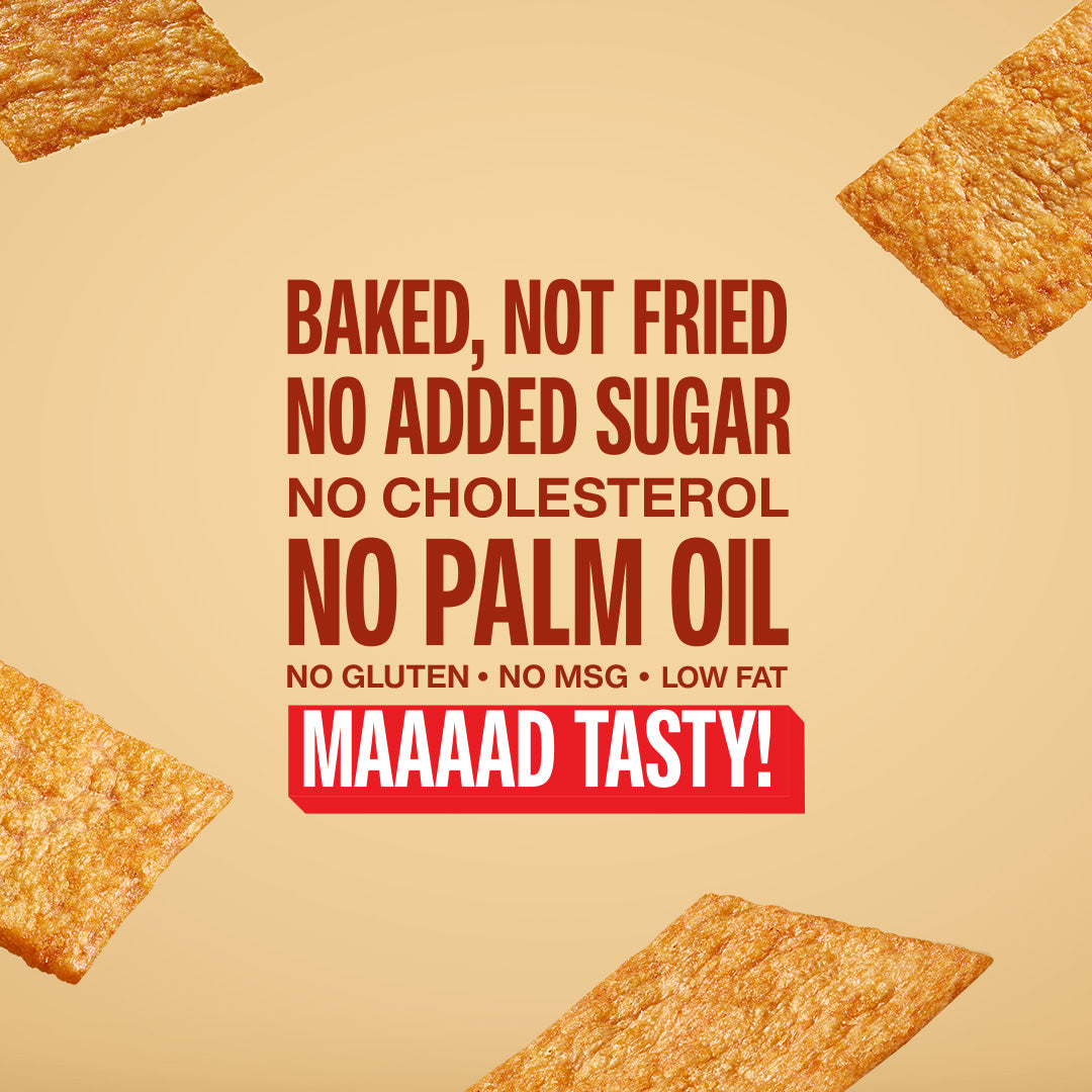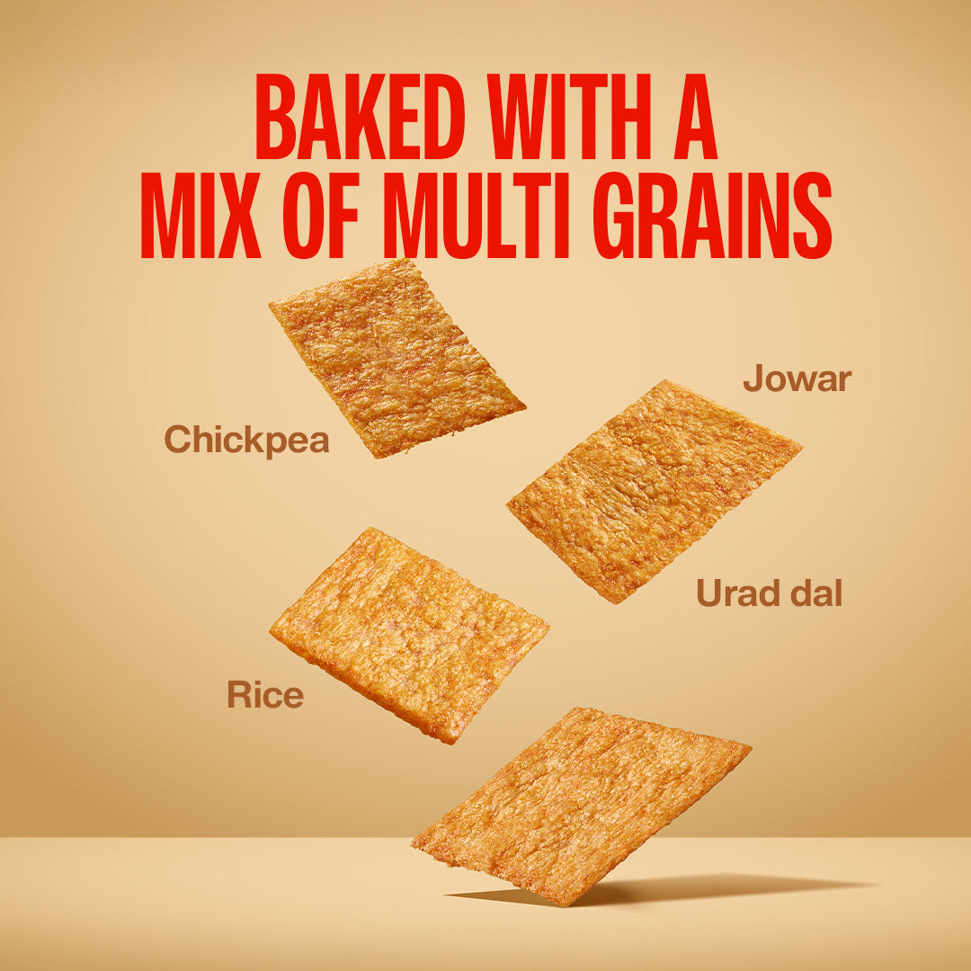 10 packs of crunchy multigrain protein chips across 4 bold flavours. 10g plant-powered protein and 169 kcal per 40g pack. No added sugar, no palm oil. Made with urad dal, rice, jowar and chickpea.
